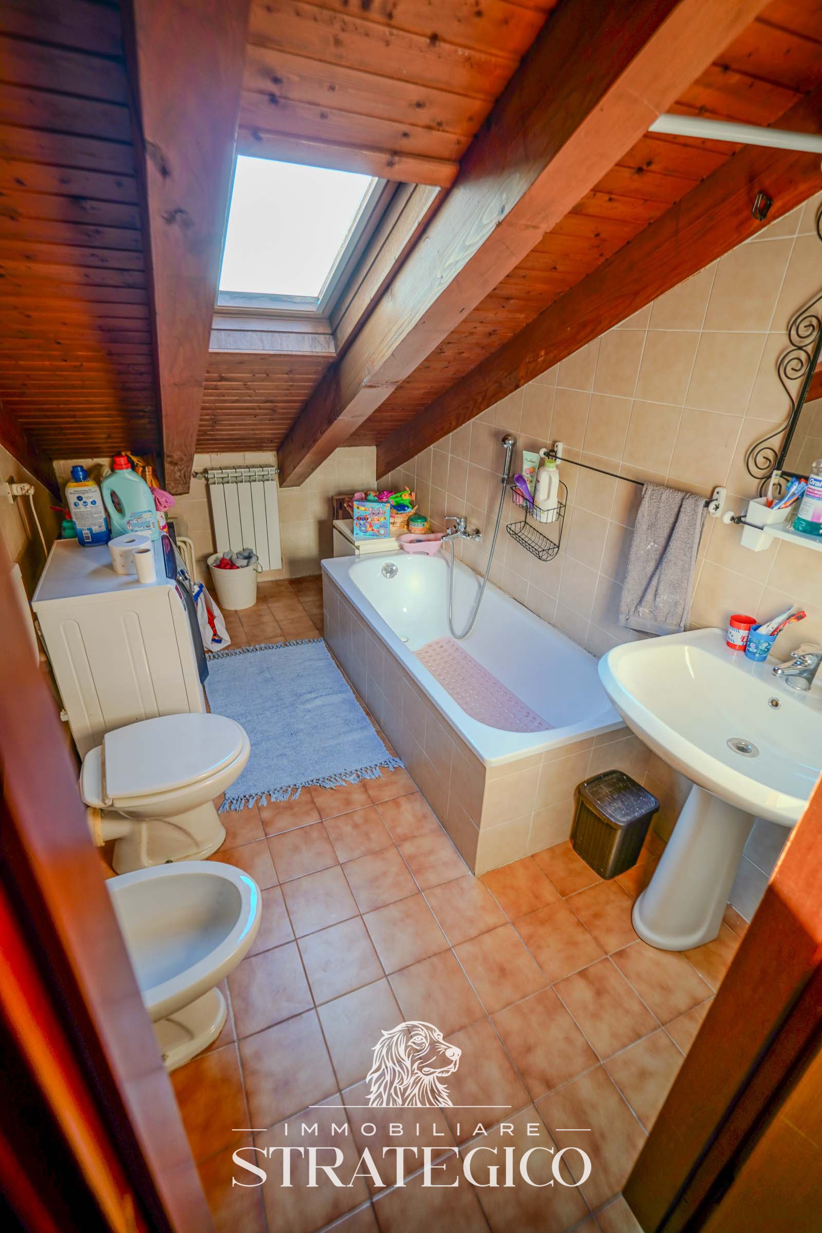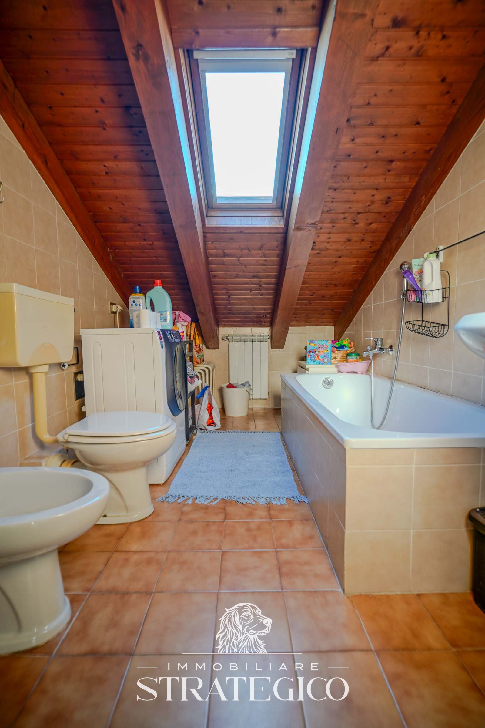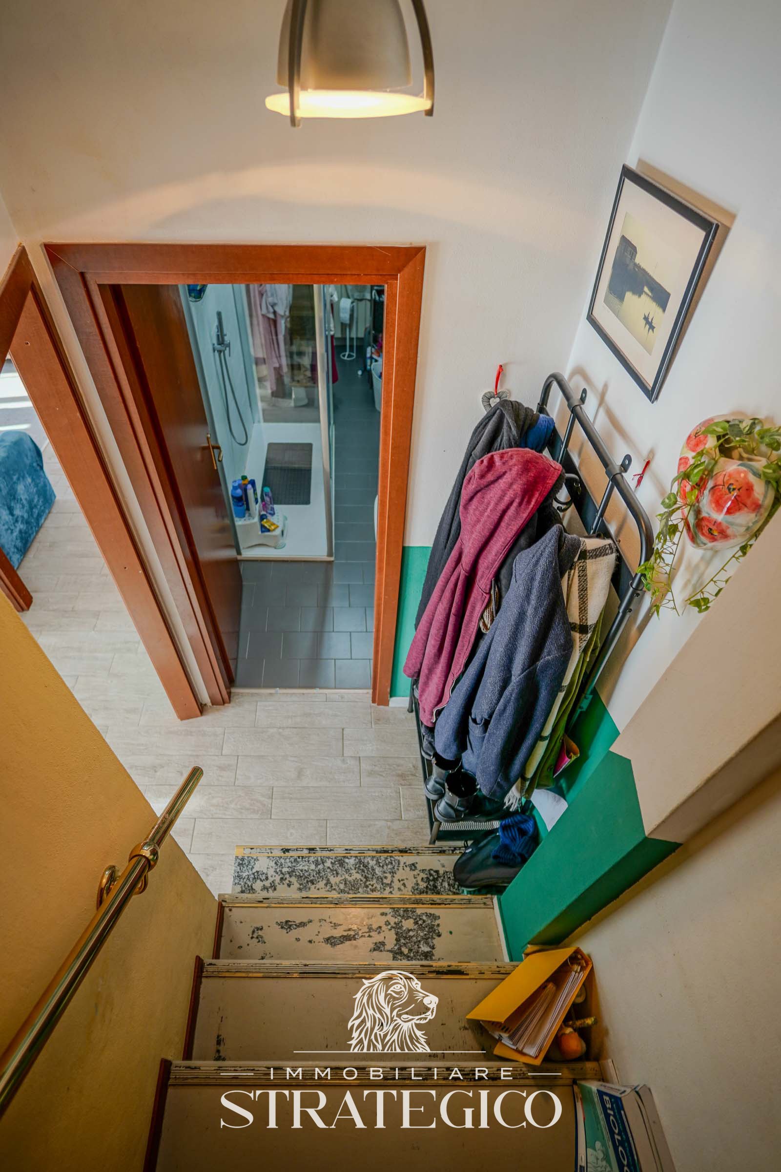 Completa il piano una sala indipendente. Sia dalla cucina che dalla sala si accede al balcone, che si sviluppa per tutta la lunghezza del primo livello, ampliando gli spazi vivibili e garantendo ottima luminosità. A servizio del piano è presente un bagno finestrato con ampia doccia, comodo e ben organizzato.