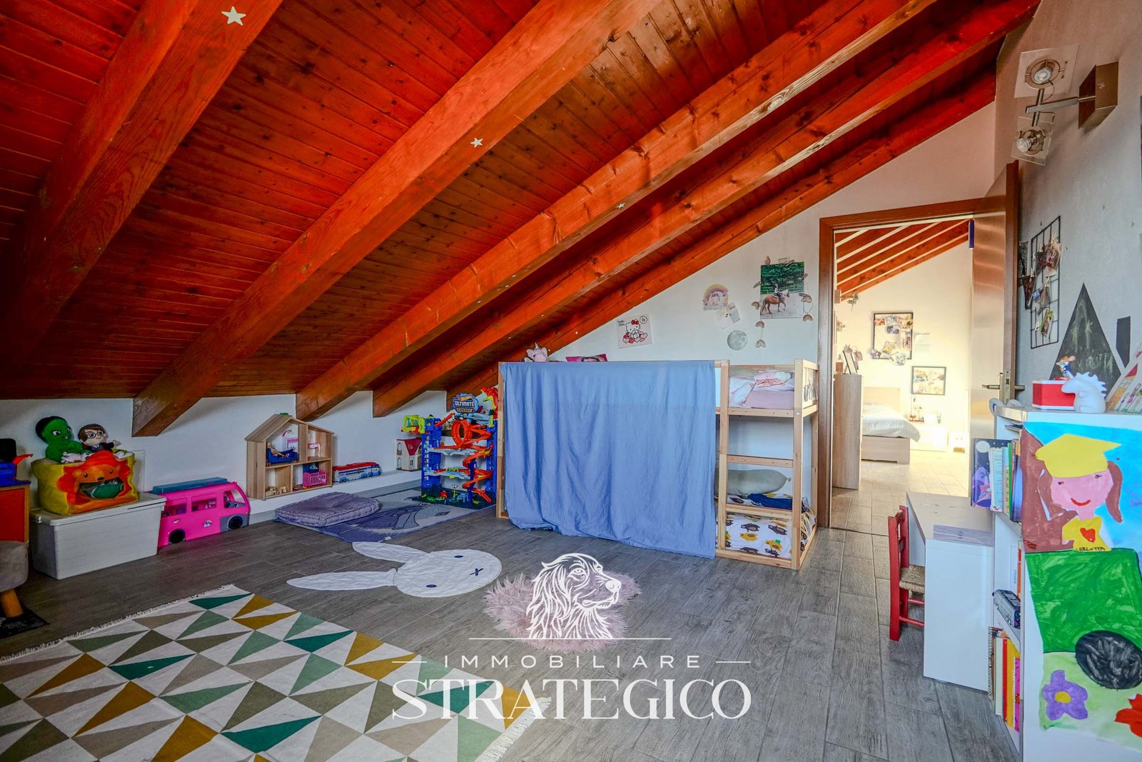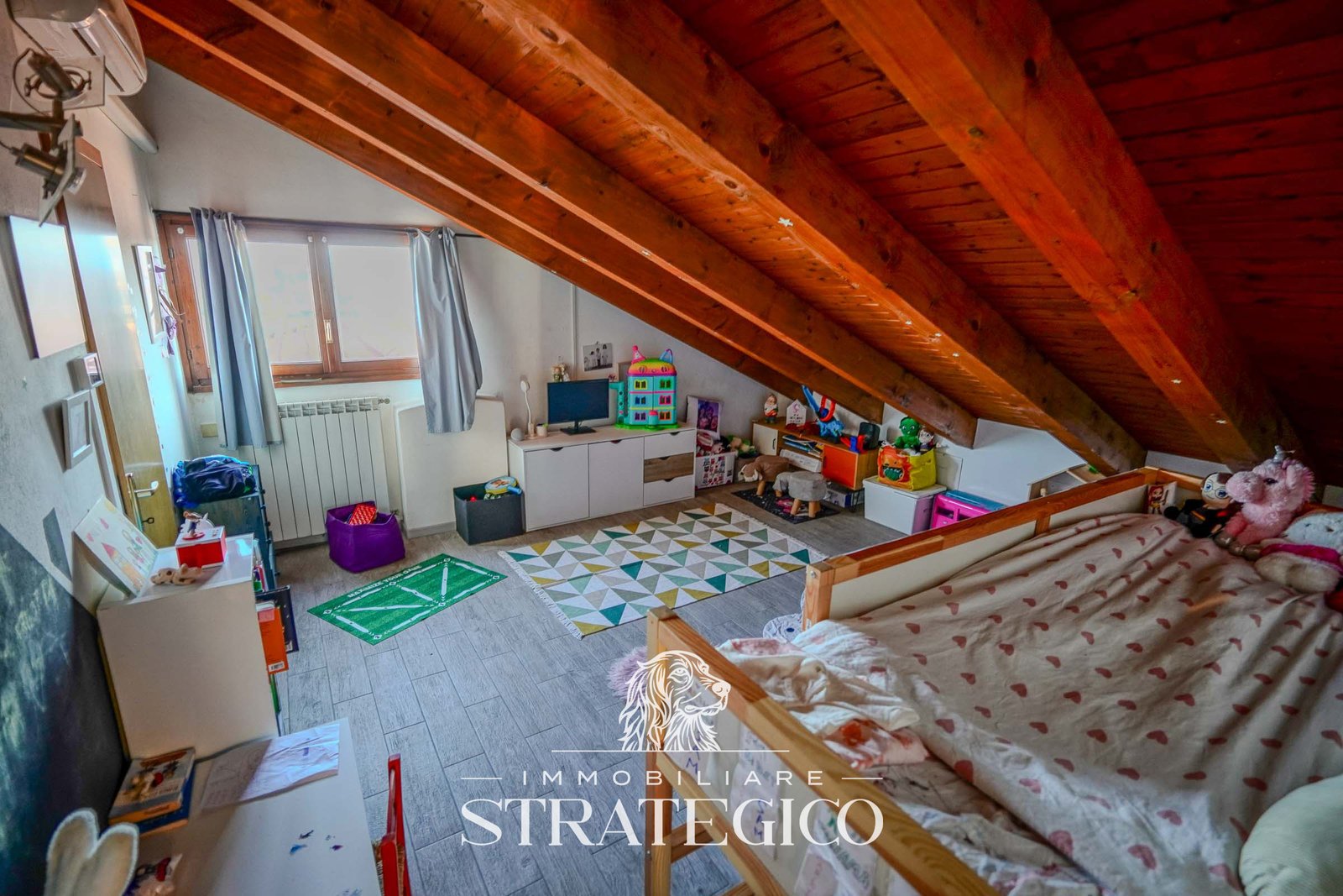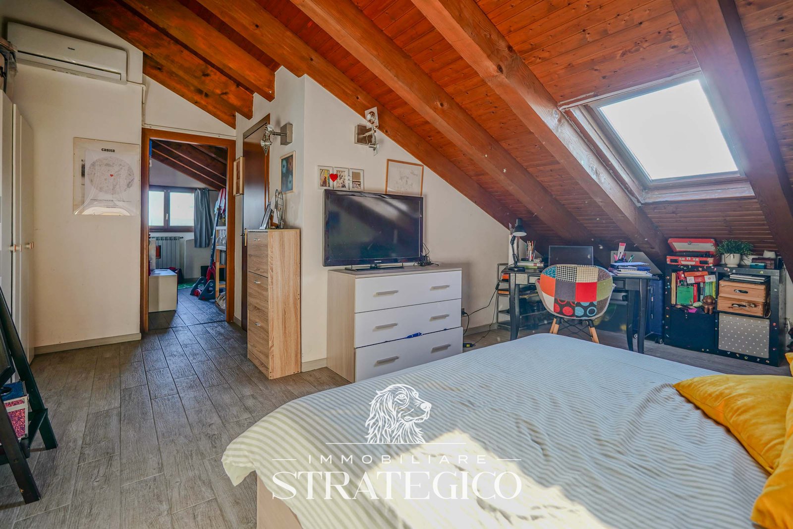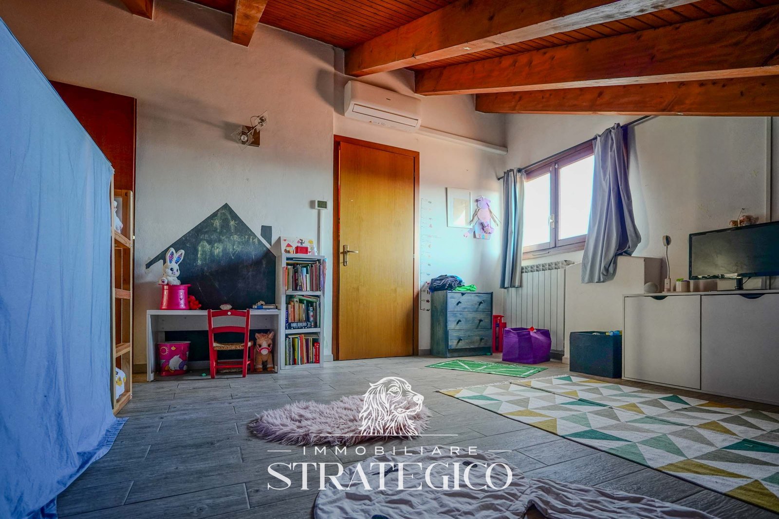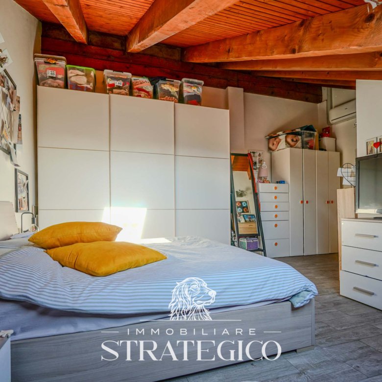 Al piano superiore si sviluppa la zona notte, composta da due ampie camere mansardate e da un secondo bagno con vasca; entrambi gli ambienti sono dotati di split per l’aria condizionata, garantendo comfort anche nei mesi estivi.
