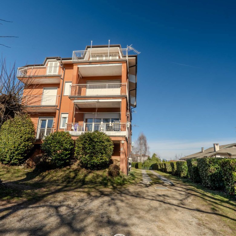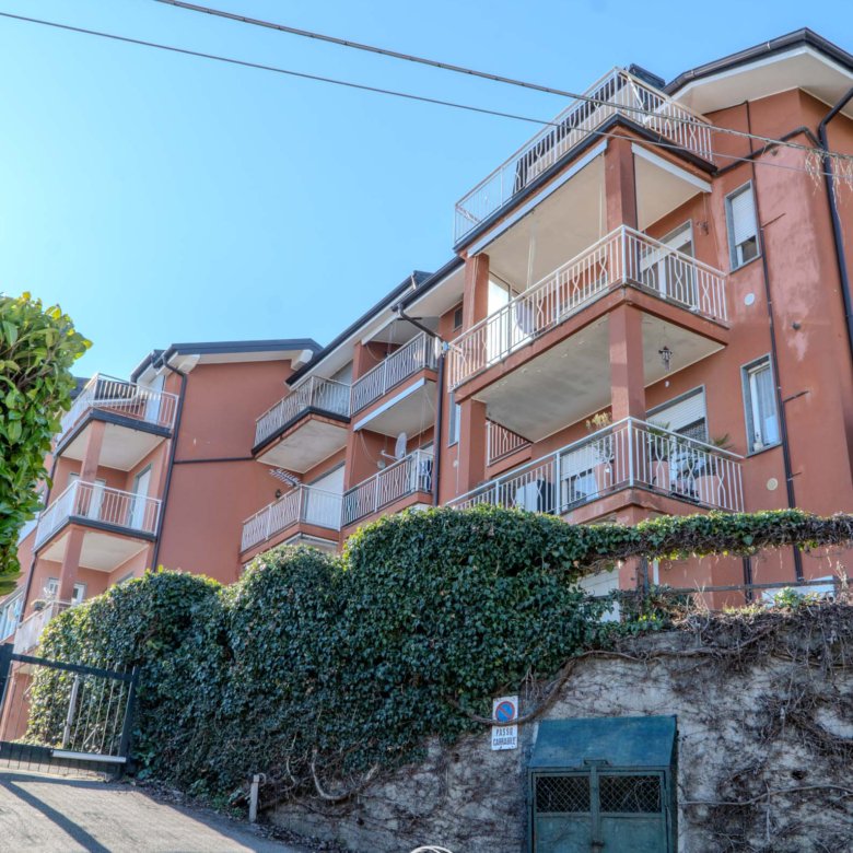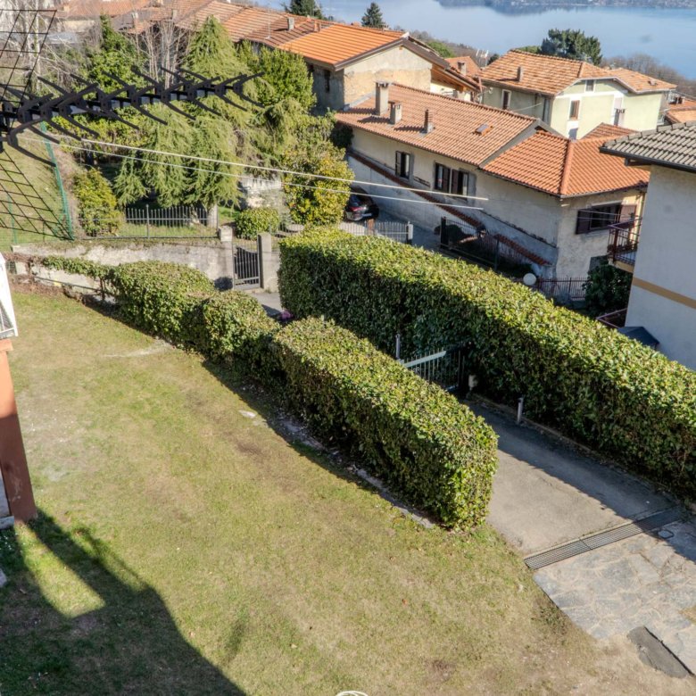 L’ingresso si apre su un ampio soggiorno con terrazza panoramica vista Lago Maggiore. Prosegue con una cucina semi abitabile, un piccolo bagno finestrato con vasca, una camera matrimoniale con balcone affacciato sul giardino comune e una seconda camera con un secondo balcone, anch’esso rivolto verso il verde condominiale. Completano la proprietà una cantina al piano seminterrato e un ampio box.